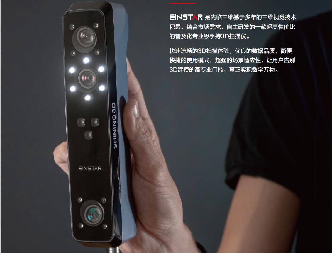 Einstar基于多年的三維視覺技術(shù)積累,結(jié)合市場需求,自主研發(fā)的一款超高性價比的普及化專業(yè)級手持3D掃描儀。 快速流暢的3D掃描體驗(yàn),優(yōu)良的數(shù)據(jù)品質(zhì),簡便快捷的使用模式,超強(qiáng)的場景適應(yīng)性,讓用戶告別